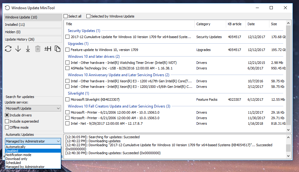 * V pripade ze nechces UP zcela zastavit, spatny neni i : "Windows Update Mini Tool " ktery umozni, nebo zprehledni sluzbu UPdate, v nastaveni je klasika jakou potkame i v gpedit, jakym zpusobech chces UPdates dostavat.(security, ON, OFF, jen stahnout a neinstalovat etc ..