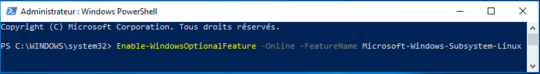 Enable-WindowsOptionalFeature -Online -FeatureName Microsoft-Windows-Subsystem-Linux