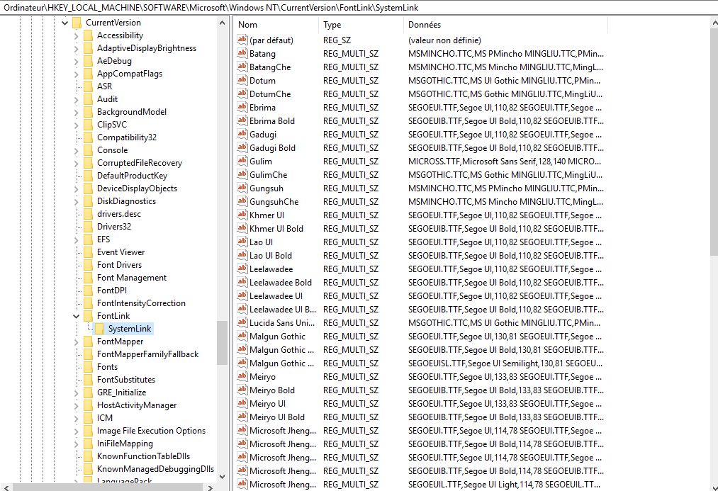 Uzivatelum co by se s problémem zobrazeni fontu setkali, nahlédnout na obsah registracniho klice 'SystemLink' zda-li je urcity "font" k vyzvednuti a spravne uveden pod "font fallback" registracniho klice :> HKEY_LOCAL_MACHINE\SOFTWARE\Microsoft\Windows NT\CurrentVersion\FontLink\SystemLink -- https://docs.microsoft.com/en-us/globalization/input/font-technology#font-fallback)
