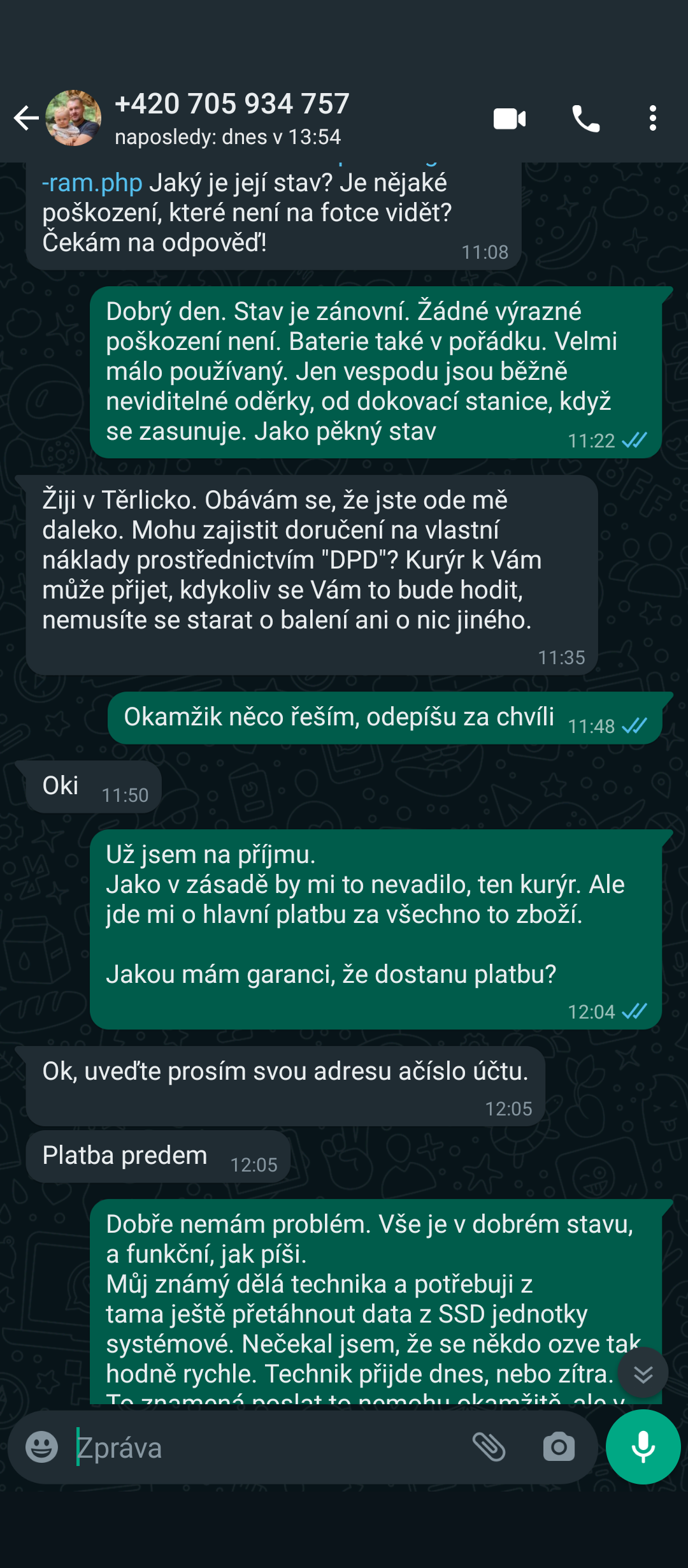 Z Bazoše se mi ozval přes Aplikaci Whats App poměrně dokonale připravený zloděj, který nejprve předstíral běžný zájem.