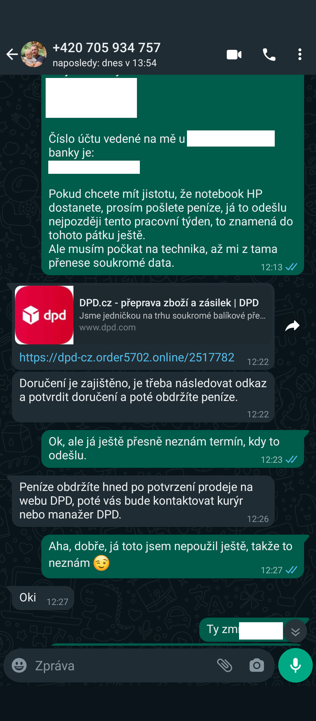 Z Bazoše se mi ozval přes Aplikaci Whats App poměrně dokonale připravený zloděj, který nejprve předstíral běžný zájem.