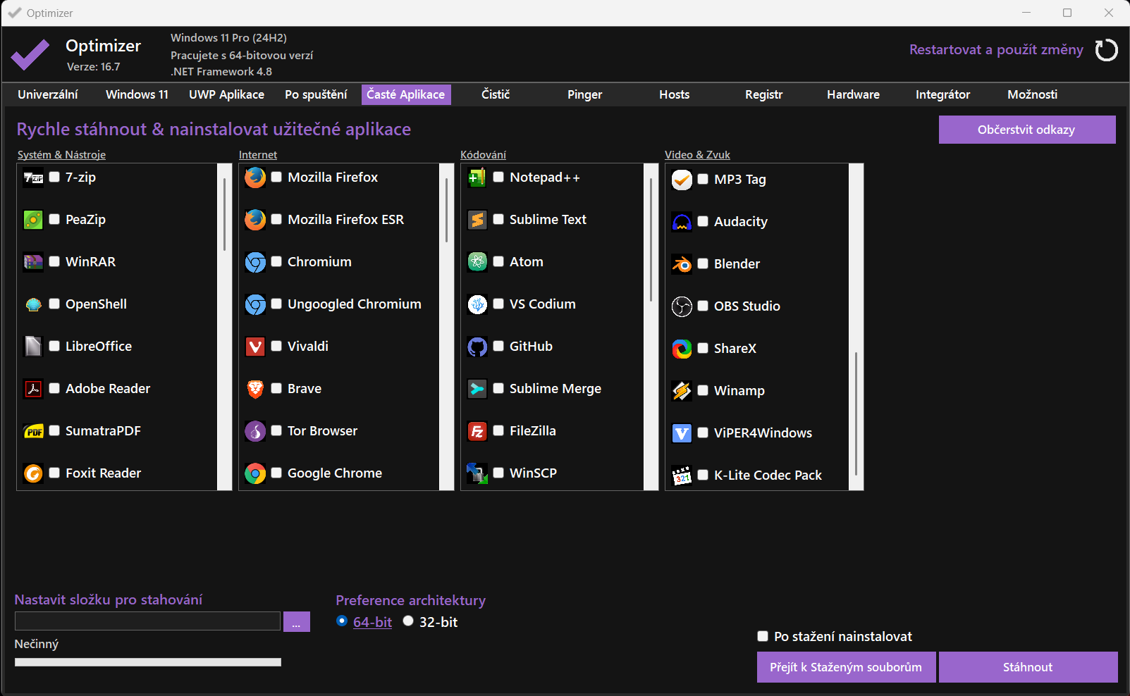 Na stahnuti 👉 : https://github.com/hellzerg/optimizer/releases (doporucuji zvolit posledni Optimizer-16.7.exe)
