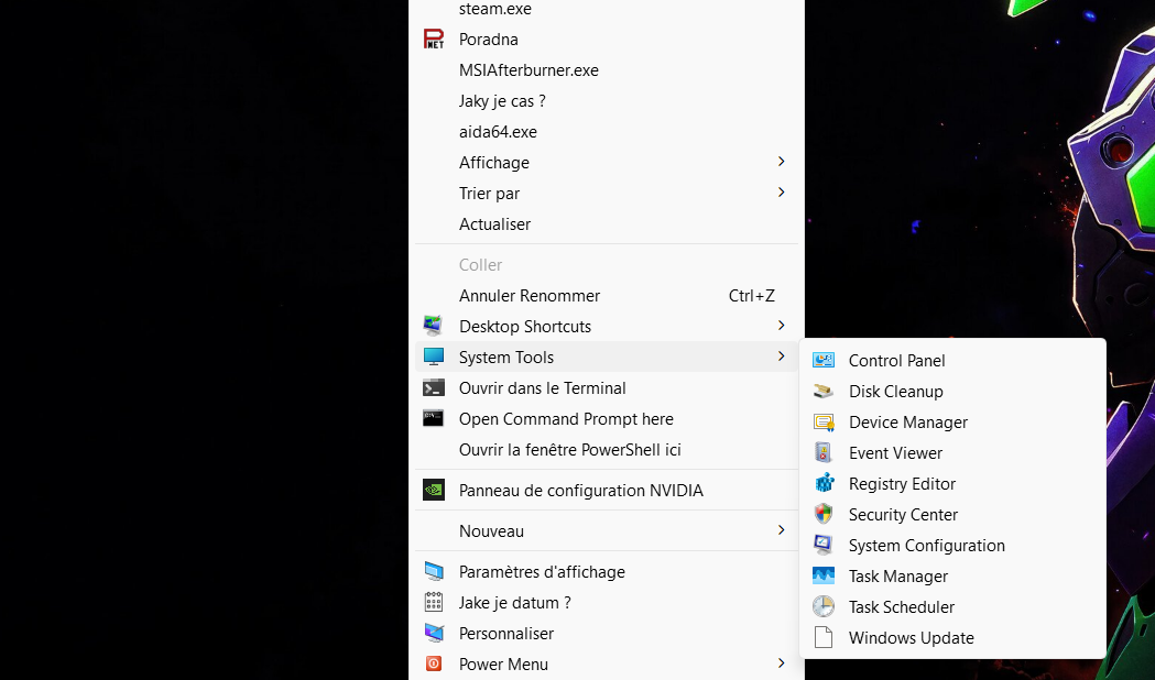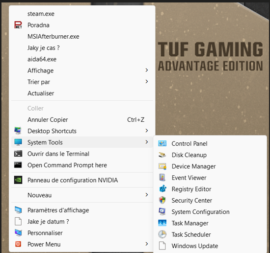 Zajimava funkce, pridani aplikaci nebo URL odkazu tak jako dalsich veci jako scripts, muzete pridat do rychleho menu (kdyz kliknete pravym tlacitkem mysi)