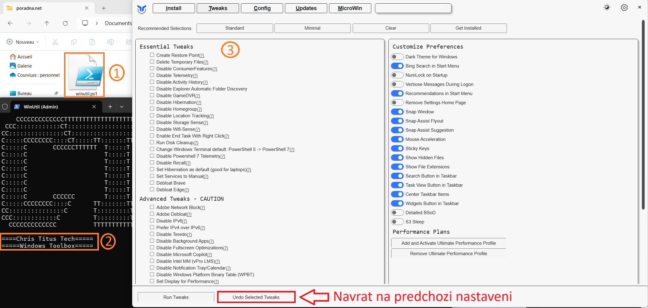 - Win Utils od Chrise Tituse : https://christitus.com/windows-tool/ , osobne bych ho ocenil 7.5/10, není to pro uplné 👩🏼🦽 kryple 👩🏼🦼➡️