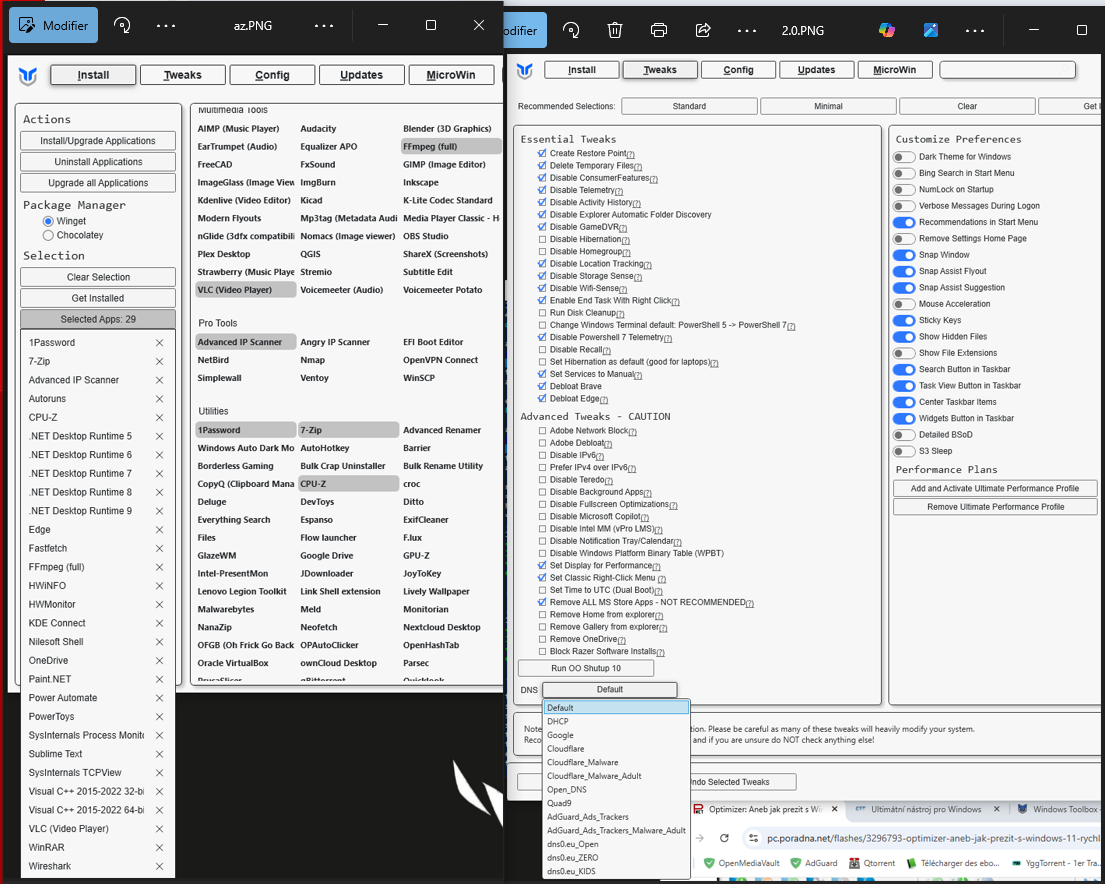 Optimizer: Aneb jak prezit s Windows 11, rychla instalace APP, Stop WIN sluzeb, telemetrie ..