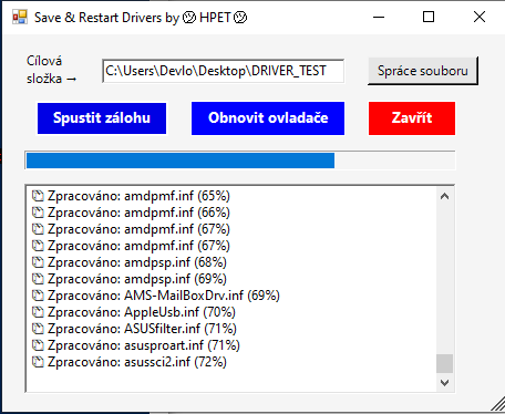 - Aby to nebyl furt terminal, sem tam tomu necham GUI na zaklade "System.Drawing" coz se da naucit za par hodin. Ohenda jsem si udelal také malé tools k rychle zaloze ovladacu PC do zvolene polozky nebo HDD (ne jen klasicke "cat, sys, inf", v nekterych pripadech zalohuje i cele MB/GPU/LAN) i se SW casti" s tim, zo je zavedu inhed jako postinstalacni drivery po ciste instalacce OS, nez me predbehne WIN. (jo, kdyz je PC fyzicky blizko tak jde odpojit LAN ze ..). Na beznem NTB/PC zaloha driveru dela okolo 2GB, zpracovano pod 60/s : GUI