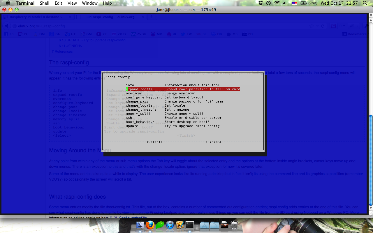 Na zaciatku sa ti spusti tzv. raspi-config. Dobre je v nom vsetko si ponastavovat. Time zone, klavesnicu etc. A najdolezitejsie je expandovat root particiu, pretoze Win32DiskImager ti vytvori particiu len 2GB velku. Takze druha moznost zvrchu ti rozsiri particiu na celu velkost tvojej SD karty. Ostatne veci uz hadam nejak zvladnes.