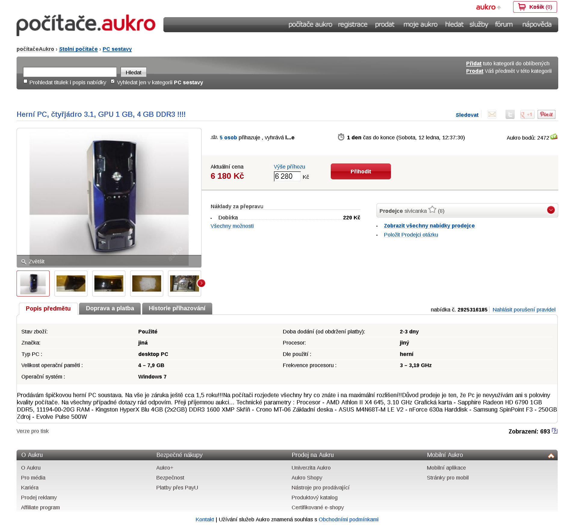 Za cca 6 000,- lze pořídit desku, CPU, paměti a přidat za AMD Radeon HD7750. Což je rozumnější než třeba uvedená hrůza korunovaná "úžasným" pseudozrojem Evolve.Prodávám špičkovou herní PC soustava. Na vše je záruka ještě cca 1,5 roku!!!Na počítači rozjedete všechny hry co znáte i na maximální rozlišení!!Důvod prodeje je ten, že Pc je nevyužívám ani s poloviny kvality počítače. Na všechny případné dotazy rád odpovím. Přeji příjemnou aukci... Technické parametry : Procesor - AMD Athlon II X4 645, 3.10 GHz Grafická karta - Sapphire Radeon HD 6790 1GB DDR5, 11194-00-20G RAM - Kingston HyperX Blu 4GB (2x2GB) DDR3 1600 XMP Skříň - Crono MT-06 Základní deska - ASUS M4N68T-M LE V2 - nForce 630a Harddisk - Samsung SpinPoint F3 - 250GB Zdroj - Evolve Pulse 500W
