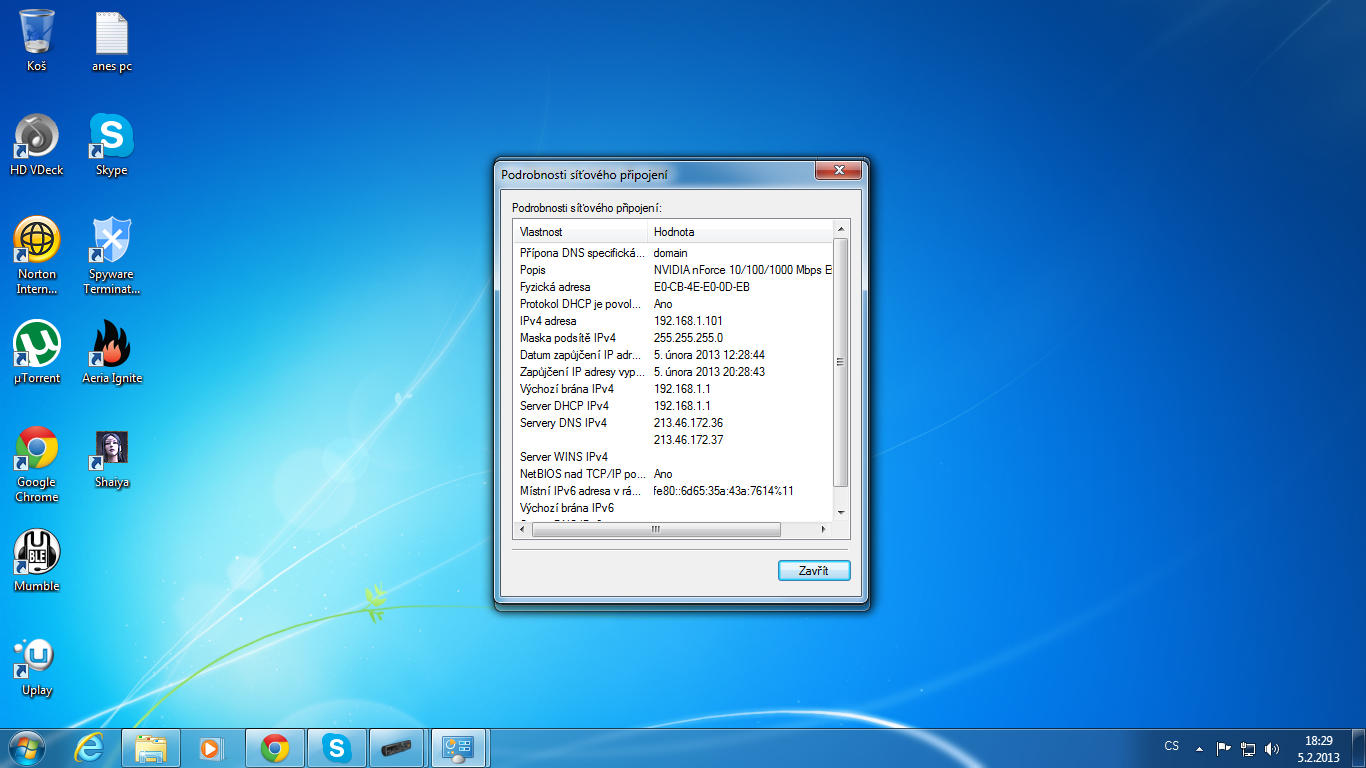 nevím jestli to pomůže ale tu je screen co se týče IP atd. nevím jestli tam něco nechybí