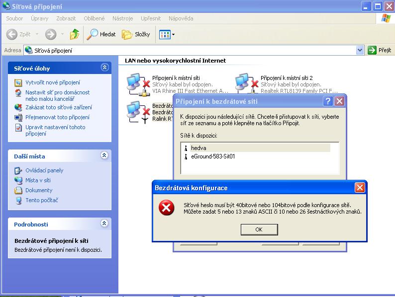 Tak sem to nainstaloval, vypadá to že je to v pohodě, ale furt mi to nejde připojit. Píše mi to furt: Síťové heslo musí být 40bitové nebo 104 bitové podle konfigurace sítě. Můžete zadat 5 nebo 13 znaků ASCII či 10 nebo 26 šestnáctkových znaků.