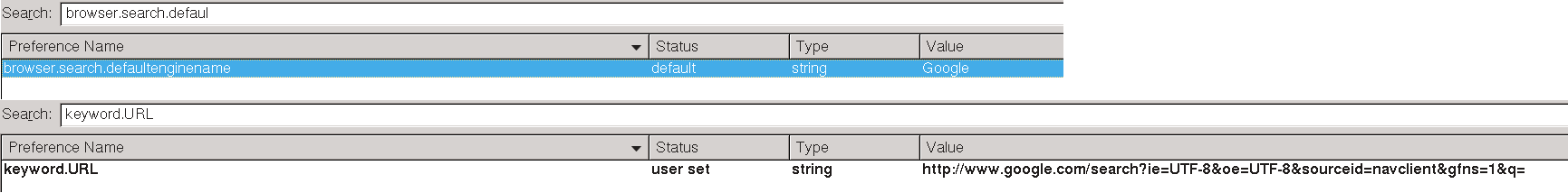browser.search.defaultenginename browser.search.defaulturl