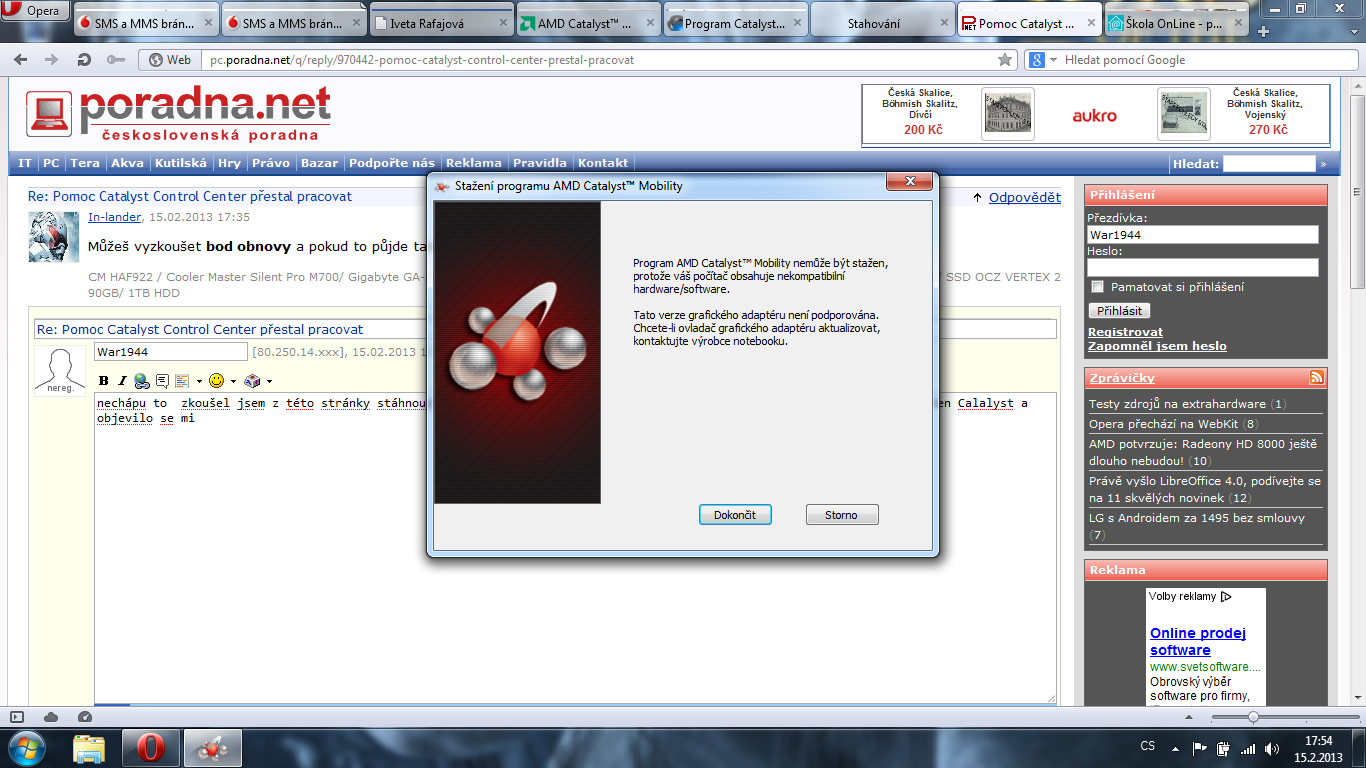 Mne se stalo to isté Mám grafiku AMD radeon HD 6470m , stiahnul som ovladaše 1x to išlo , vypnul osm…
