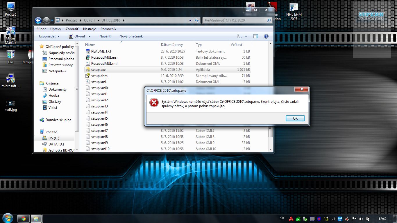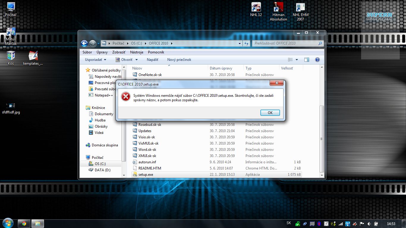 no spuštam to vždy ako správca/administrator na mojom konte doteraz mi všetko išlo / ide bez problémov len na OFFICE 2010 sa mi vyskytla tato chyba uz som skusal hladat podobne problemy aj na youtube, forach... atd. no bezuspesne proste nechce sa mi otvorit setup lebo nemoze najst subor skusil som uz aj osobitne otvorit napr. word no vybehla mi chyba vid v prilohe