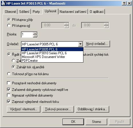 Nepoužívám ovšem ovladače pro 3015, ale pro 3005! Už si nepamatuji přesný důvod, ale prostě jsem ty třinulapatnáctkové nemohl rozchodit. Ze všech operačních systémů a PC je tisk okamžitý, žádné speciální nastavení jsem neprováděl.