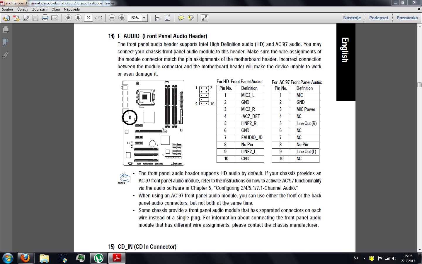 Budes sem muset napisat jake draty ti idu z kejsu, ptz z toho sa da usudtzovat ci ten kejs je AC97 a… poslední