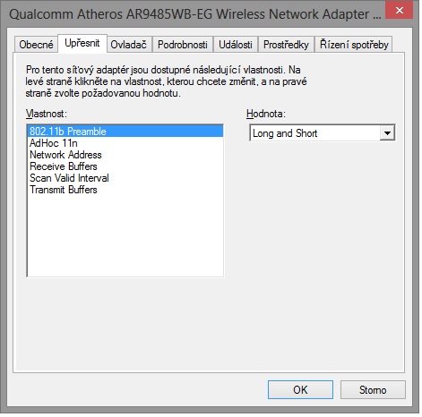 Ještě jsem koukl do nastavení adaptéru a změnil jsem, aby počítač nevypínal zařízení z důvodu šetření energie, jestli to nemůže mít náhodou souvislost.