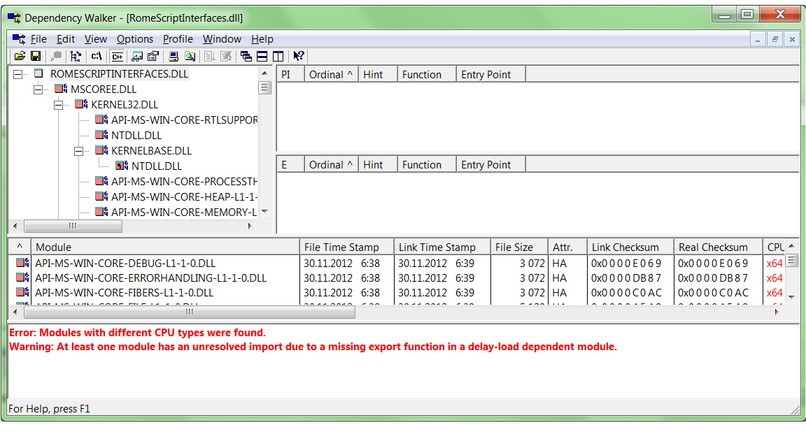 Dobrý večer,mam takový problém,padala mě hra tak mi bylo doporučeno abych zjistil jestli nechybí nějaký soubor DLL,tak jsem to chtěl projet programem Dependency Walker,ale program hlásí chybu: