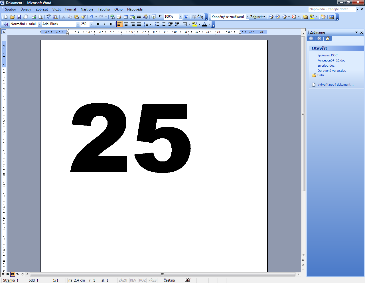 však to nemá přesně, pokusem-omylem (improvizací) vybral typ písma a nastavil vysokou hodnotu veliko…