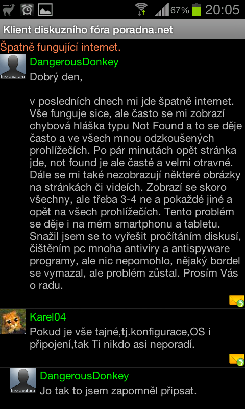 nespokojen s tím, jak zdejší fórum vypadá na mobilu, vytvořil jsem nativního androidího klienta pro poradnu. Snad s tím, že parsuju html poradny nebude mít zdejší high council problém...