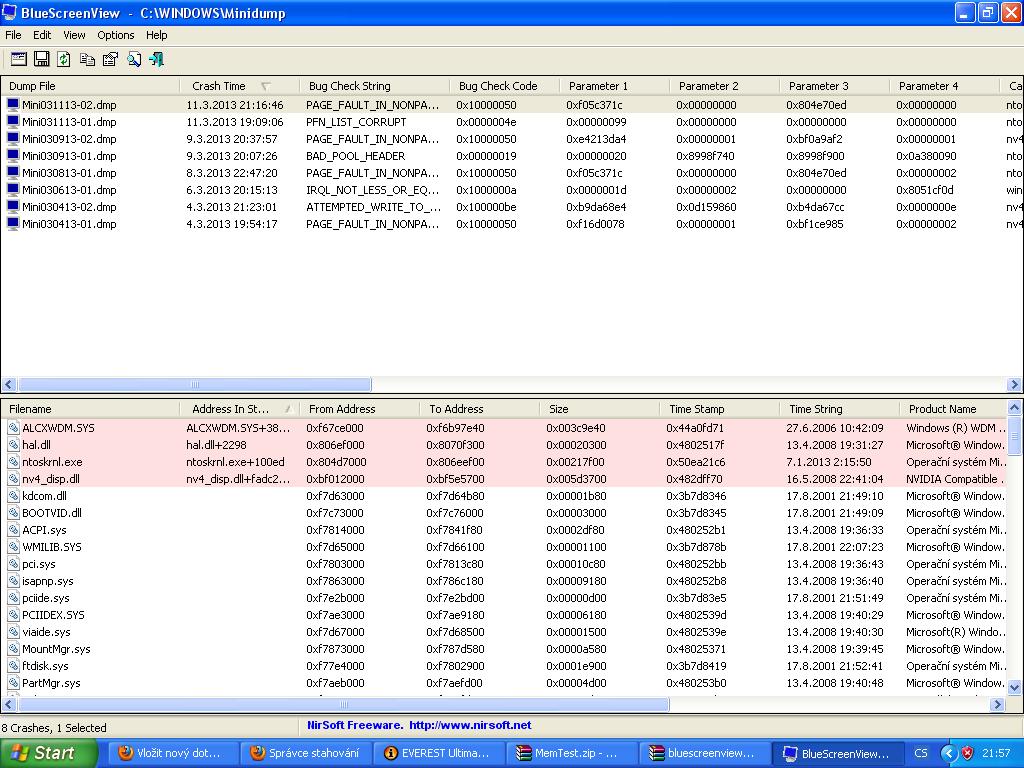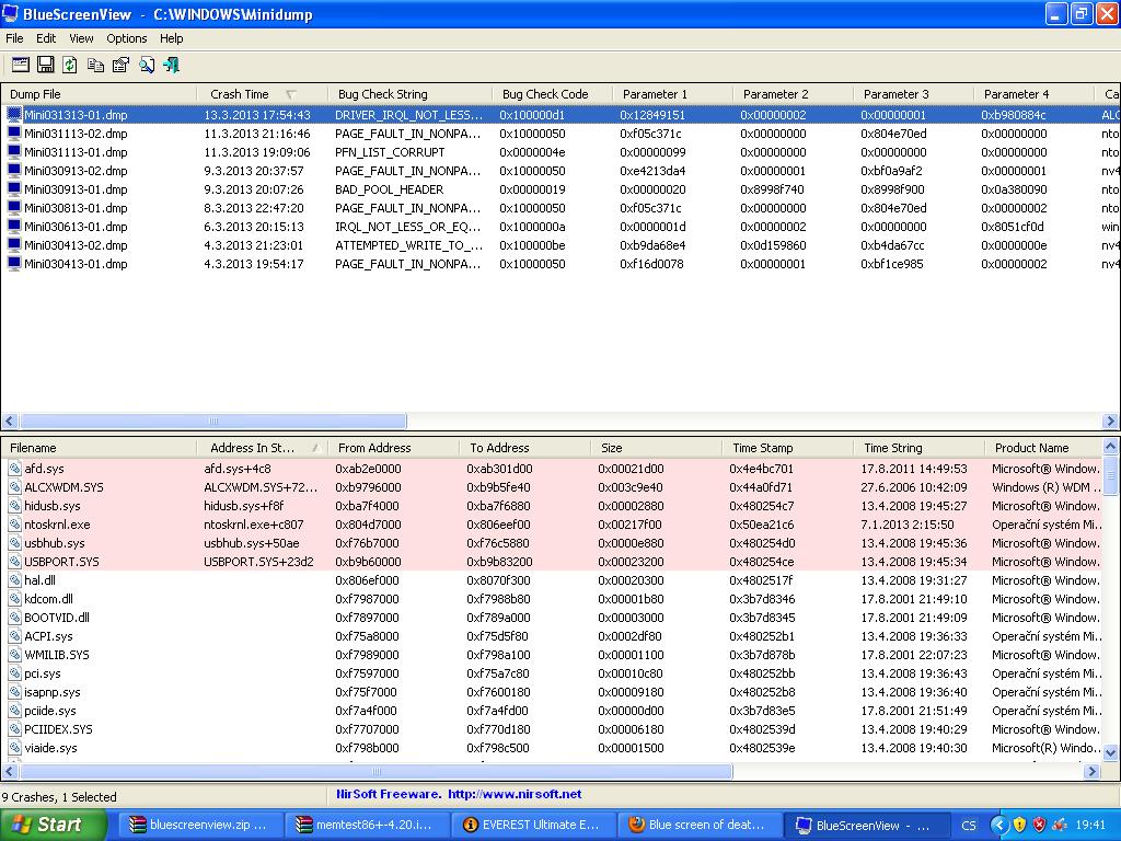 - nebo se něco plete driverům do práce (ale antivir v tom krátkém výpisu ovladačů nevidím),
