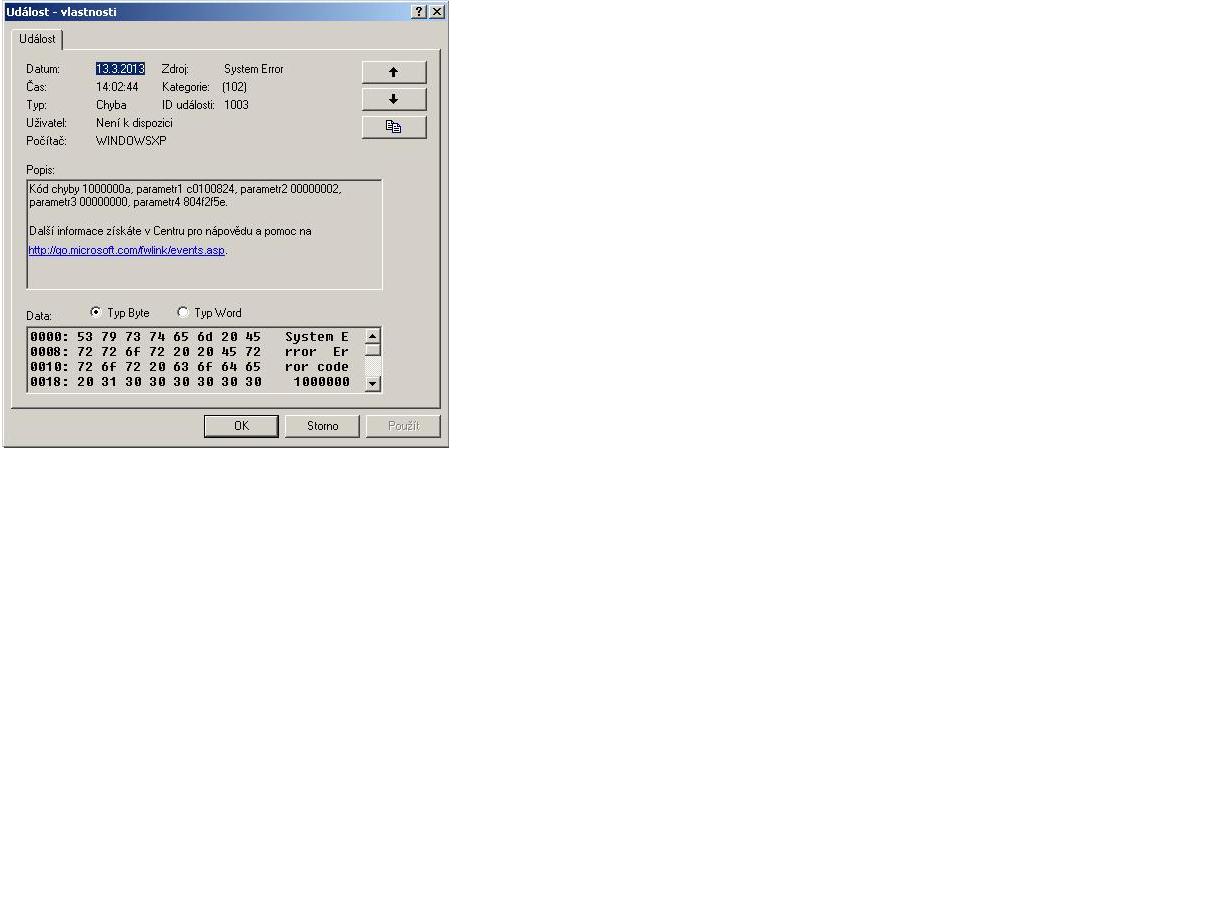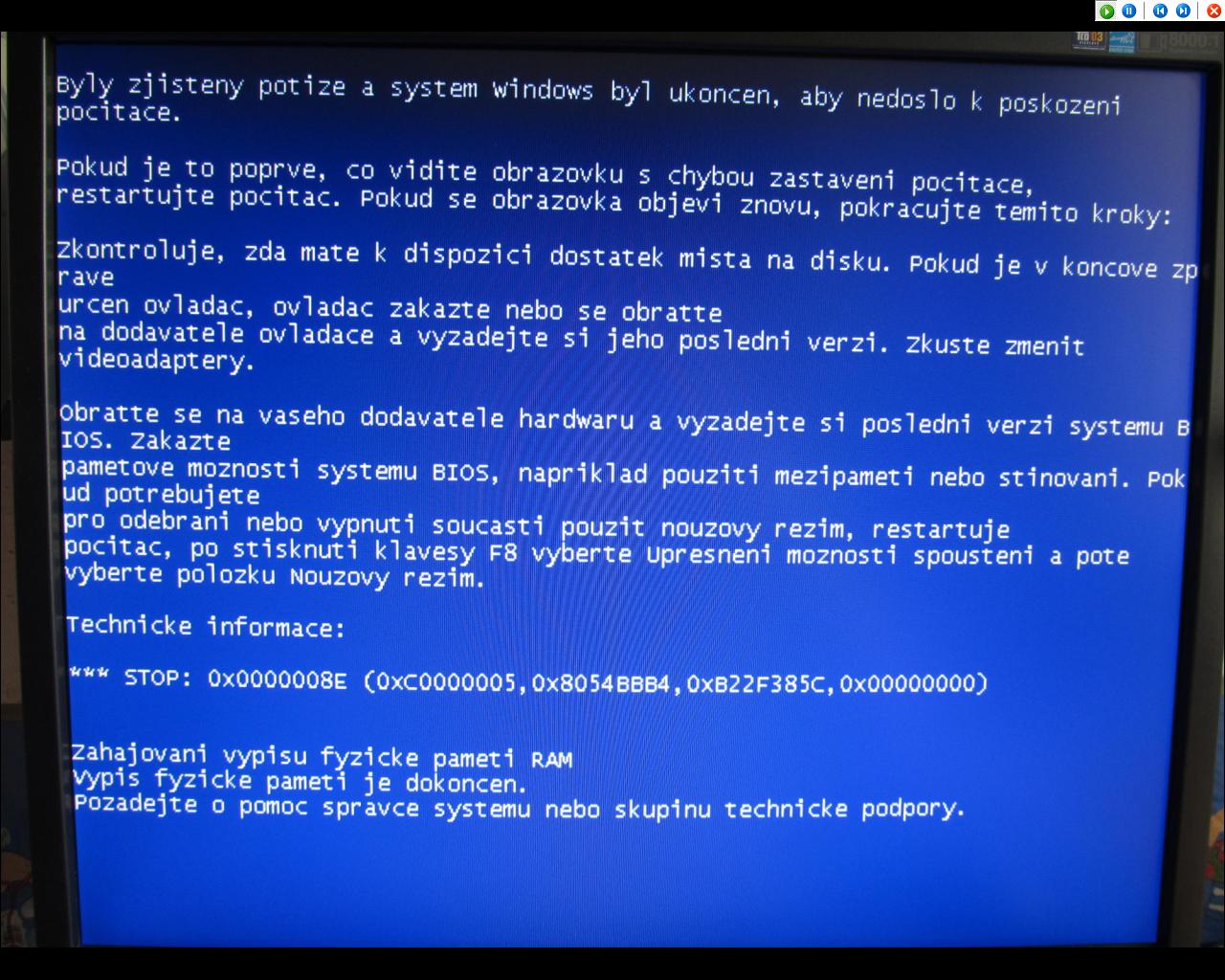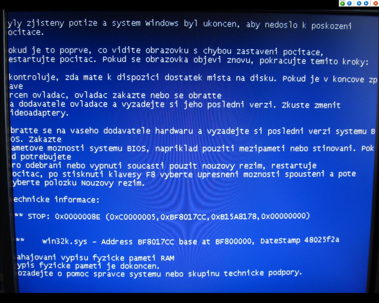 obracím se na Vás s problémem, se kterým si již nevím rady. Jedná se o časté selhávání systému do modré smrti. Když se to stalo jednou, tak jsem to přešel, jenže na podruhé jsem již začal dohledávat příčiny. V systému jsem nastavil, aby se po selhání nerestartoval. Tudíž jsem měl možnost všechny modré smrti přefotit. Zatím mám přefocené čtyři (viz. přílohy). Dříve na PC byl systém Windows XP Home Edition, se kterým nebyli žádné potíže. Nedavno jsem ale PC přeinstaloval na Windows XP Professional, a tam vše začalo. Systém jsem přeinstaloval proto, jelikož byl doslova již v dezolátním stavu. Ihned po nainstalování nového systému jsem dodal všechny ovladače z originálních CD. Tento PC je sice letitý, ale stále pokryje všechny mé věci, co vyžaduji (MS Office, Internet), proto bych se ho nerad zbavoval. Do modré smrti padá při procházení po internetu, procházení mezi složkami v systému, ale třeba i při psaní dokumentu v MS Office. Já z těch výpisů pamětí moc nevyčtu, proto budu rád za jakékoliv řešení. Děkuji za přízpěvky.