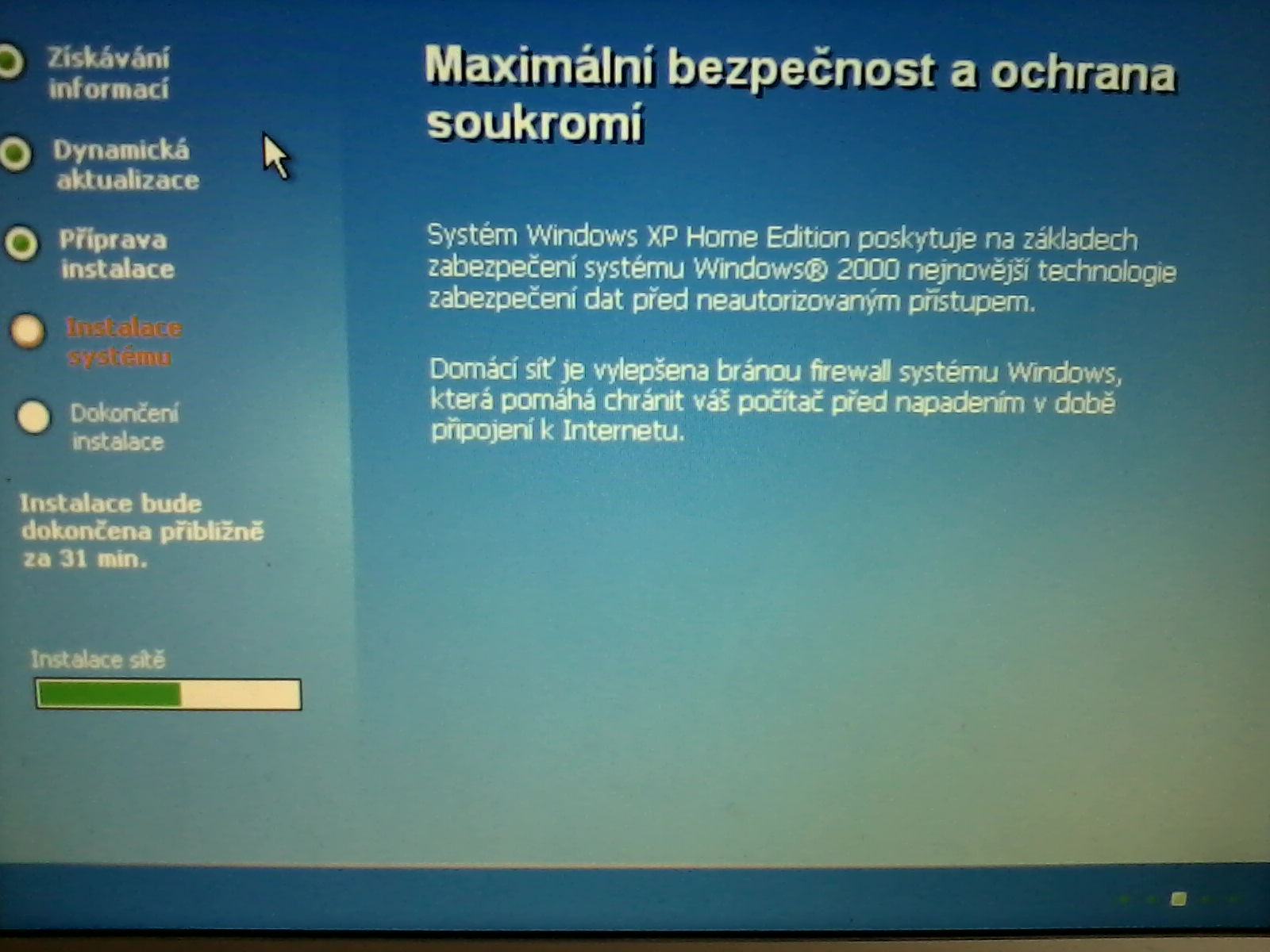 Zdravím,mám problém s instalací Windows XP... Postupuju Podle návodu.. Nastavím BIOS,prostě vše jak má být.. Nakonec dojde na Instalaci Sítě a tam nastane problém..Vždy se mi to sekne na stejném místě.. Mám Originální Windows XP Home Premium... Zkoušel jsem i 2 (vypálené) CD,ale výsledek je pořád stejný.. Nevíte čím by to mohlo být? Díky za každou radu :)