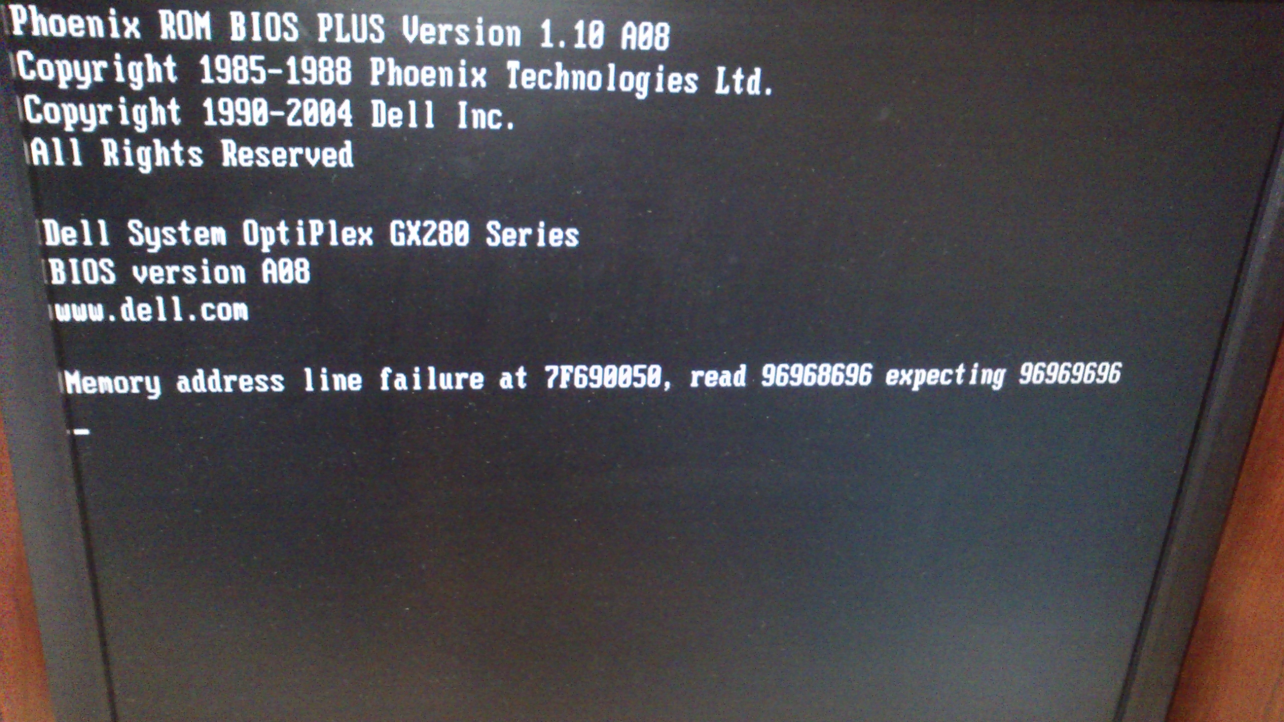 Zdechla ramka. Zkus vyměnit paměťové moduly. Nebo jen vysunout a zasunout, možná je zaoxidovaný kontakt.
