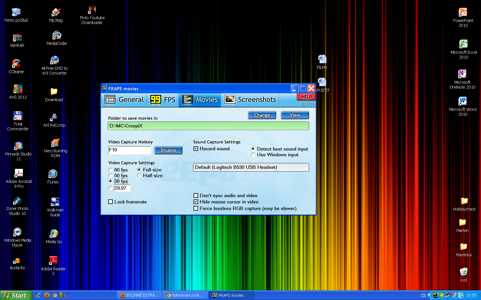 Dobrý den, chtěl bych nahrávat let's playe z her. Na natáčení používám Fraps (ve Windows XP) a jako mikrofon Logitech B530 USB. Kydž nahrávám ze hry, tak se mi nahrává pouze zvuk z mikrofonu a ne ze hry. Zkoušel jsem i Audacity, ale opět bezvýsledně. Prosím poradtě jak nahrát zvuk jak z mikrofonu, tak ze hry. Díky, E-Man