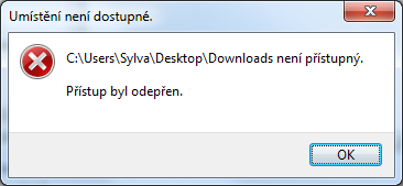 mám problém se složkou downloads uloženou v C:\Users\Sylva\Desktop\Downloads. Prostě nejde otevřít, smazat, nic. Vždycky mi to vyhodí hlášku (viz. příloha) přístup odepřen. Naformátovat disk nemůžu - mám na něm uložené windows. Snažím se už něco málo přes hodinu to najit na googlu, ale neuspesne, tak píši Vám.