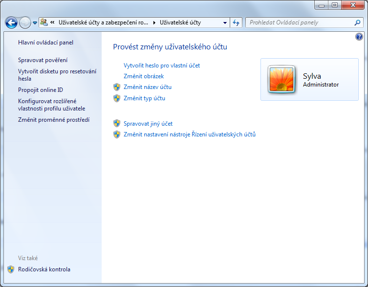 Je to mamčin počítač - menuje se Sylva - a je to jediný účet, tím pádem administrátorský. A jak už t…