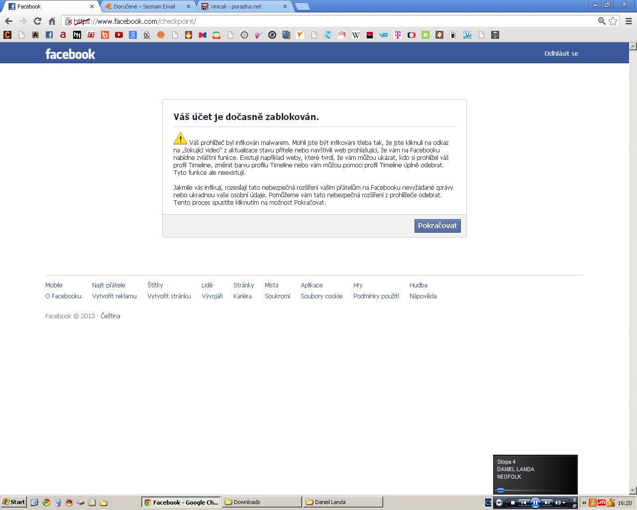 problém s blokovaným facebookem