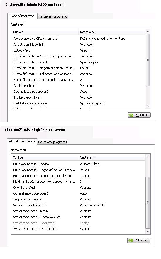 Tady jsou screeny Dxdiag a Nastavení Nividia.