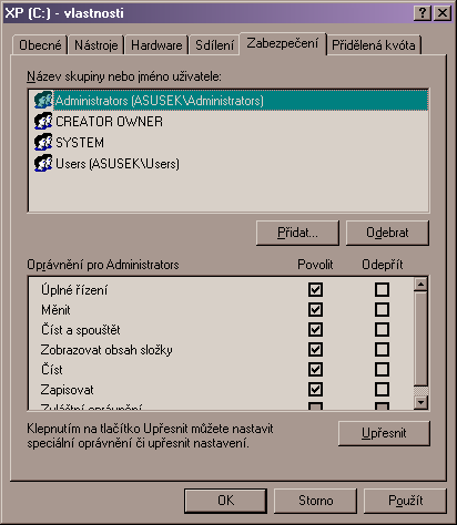 obrázek z toho zabezpečení - s právy pro tvůj účet/skupinu - sem dát nejde?