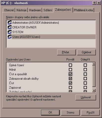 měnil jsi nastavení jen pro samotný disk c:\, nebo i pro podadresáře?