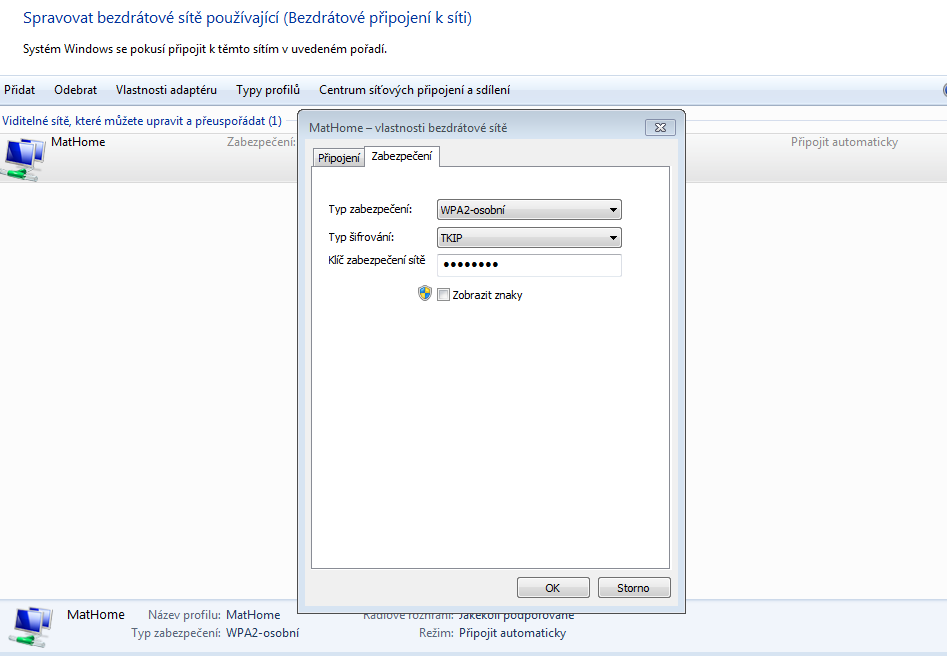 Zabezpeceni je: WPA/WPA2 PSK..do ted jsem byla na pc kamaradky,ale omylem jsem smazala nejaky progra…