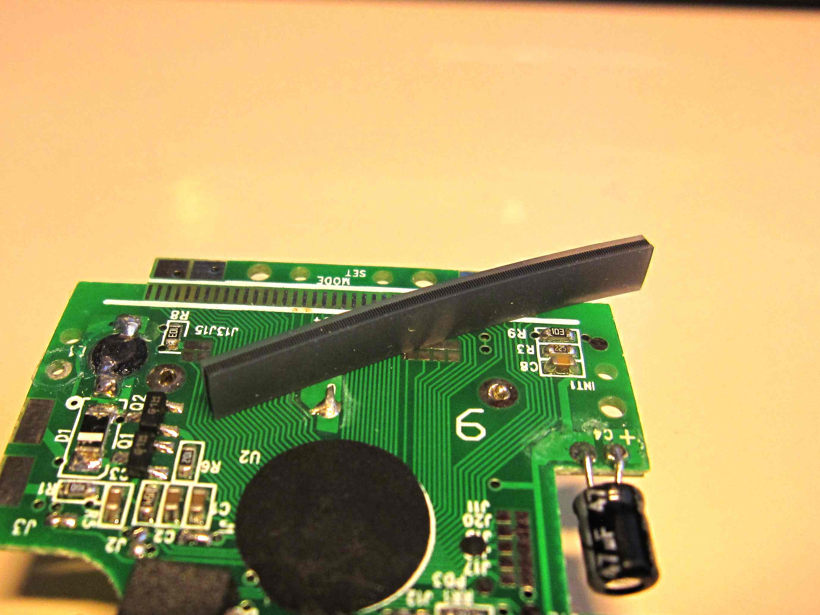 potřeboval bych poradit s následujícím. Na displeji cyklocomputeru se mi začaly špatně zobrazovat údaje - neúplné znaky. Po jeho rozdělání jsem zjistil, že k přenosu mezi jednotlivými komponenty se používá vodivých lišt - viz obrázek.