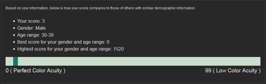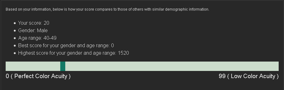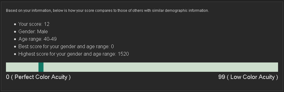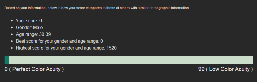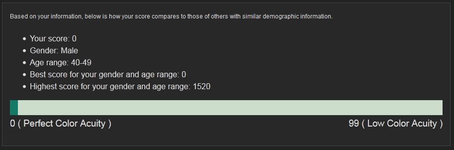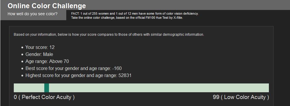 Podle mě to značná část lidí nedá vůbec (na 100%), maličko snížený barvocit je naprosto normální u velké části populace. Dokud to člověk nezačne takhle testovat, tak to ani nezjistí a samozřejmě to ani nijak nevadí.
