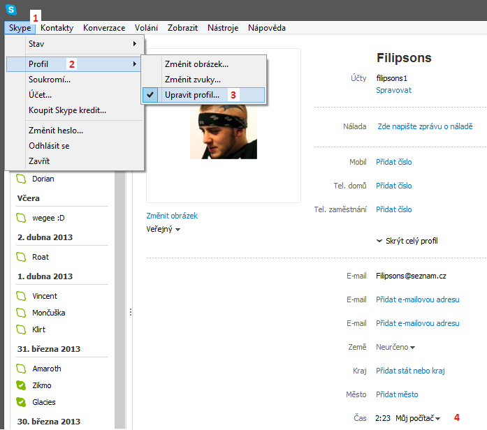 Dobrý den, prosila bych o radu. Před nedávnem se mi z nějakých důvodů při chatování na skypu začaly zobrazovat přijaté zprávy pod chybným datem i časem. Takže např. napíšu zprávu dnes 4.4. a odpověď se mi vloží do 5.2. Osobě, se kterou si píši se také zobrazuji pod chybným datem i časem, takže je složité zprávy najít. Zkoušela jsem přeinstalovat,ale stále si tuto chybu pamatuje, systém v PC je XP. Jsem počítačový laik, tak pokud bude nějaká rada, budu ráda.