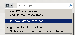| Firefox - Nástroje - Správce doplňků - Instalovat doplněk ze souboru