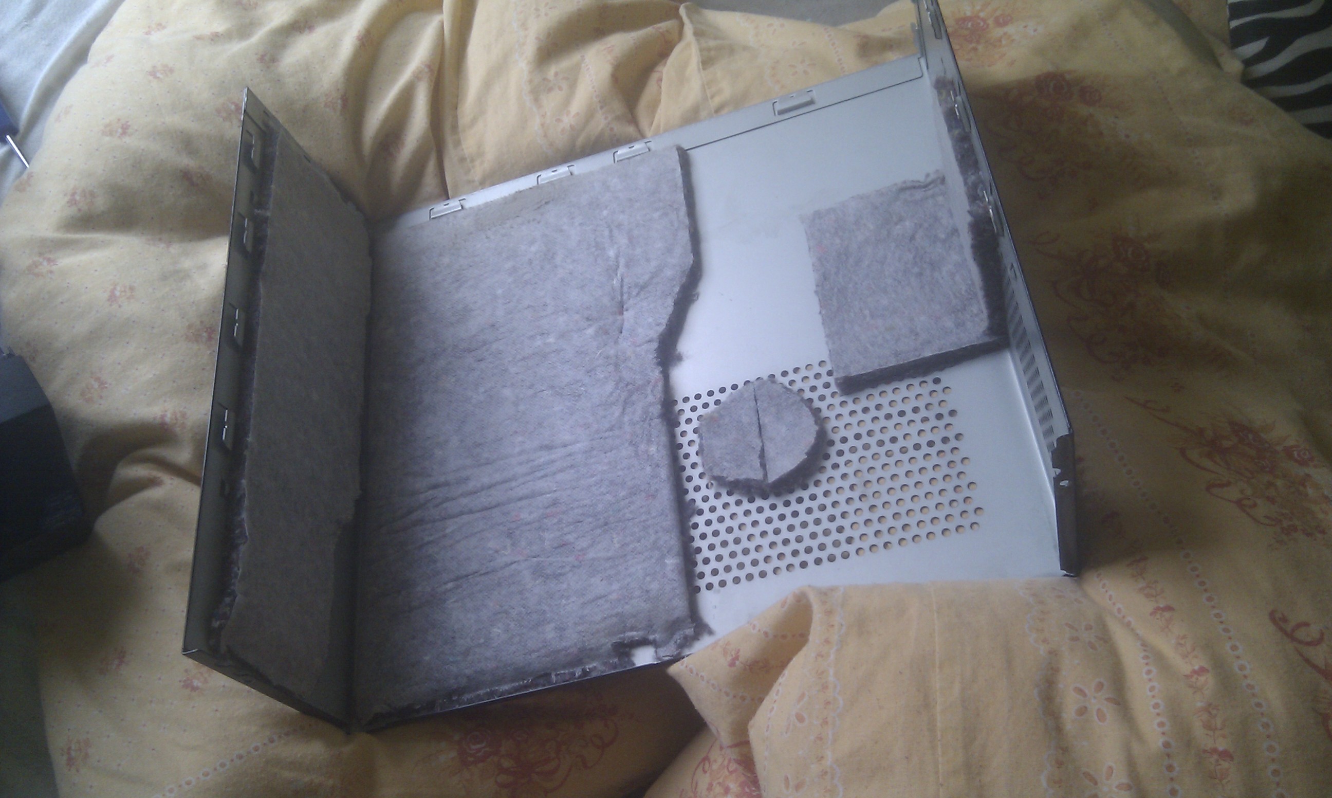 Mam to tak, ako je na obrazkoch. Mal som tam G630T a v druhom kompe tu i3, ale kamos mi posunul za 100€ pol rocnu i5 2500K, tak som to poprehadzoval a G630T predal. Odisla mi tam aj doska, tak ked som to mal rozobrate, tak som to poskladal, tak ako to je teraz(inak by som to nemenil, lebo ten chladic sa dost na chuja nasadza). Asi pred tyzdnom mi zacal hucat ten predny vetrak, ono ked ide dlhsie, tak sa ukludni, ale velku zivotnost uz asi nema(bednu mam doma uz vyse dvoch rokov). A vidiet na fotkach, ze sa u nas dost prasi, na to ze som to pred mesiacom komplet rozobral a vypucoval).
