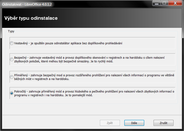 On tam má 4 levely odinstalace. V tom levelu "total brutal" Si nejdříve očuchá, kde co program má, pak spustí standardní uninslall programu, pak si vezme lupu, omrkne, kde zůstaly adresáře (složky) a jiný čurbes, omrkne registry a ještě toho často nabídne 3q k smazání. Třeba po odinstalaci Avastu. To bylo snad 50 souborů a 150 položek v registrech.