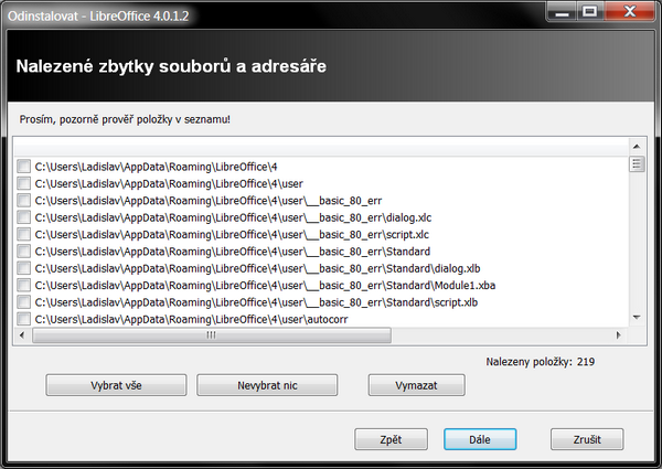 Mě to ukazuje, co našel a nabídne ke smazání. Vím, co mažu a mohu zvolit, jestli to smazat chci, nebo ne
