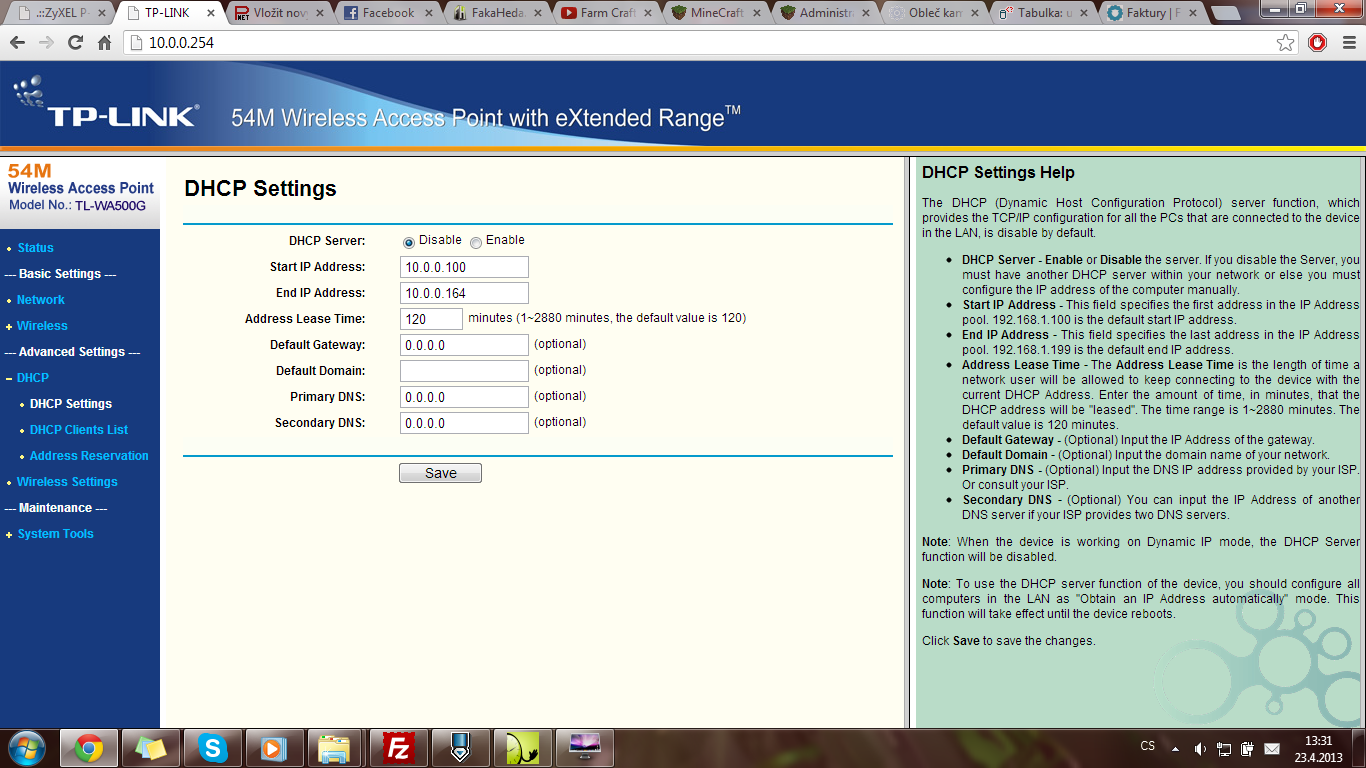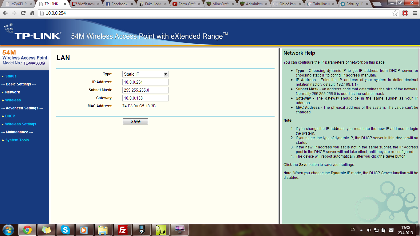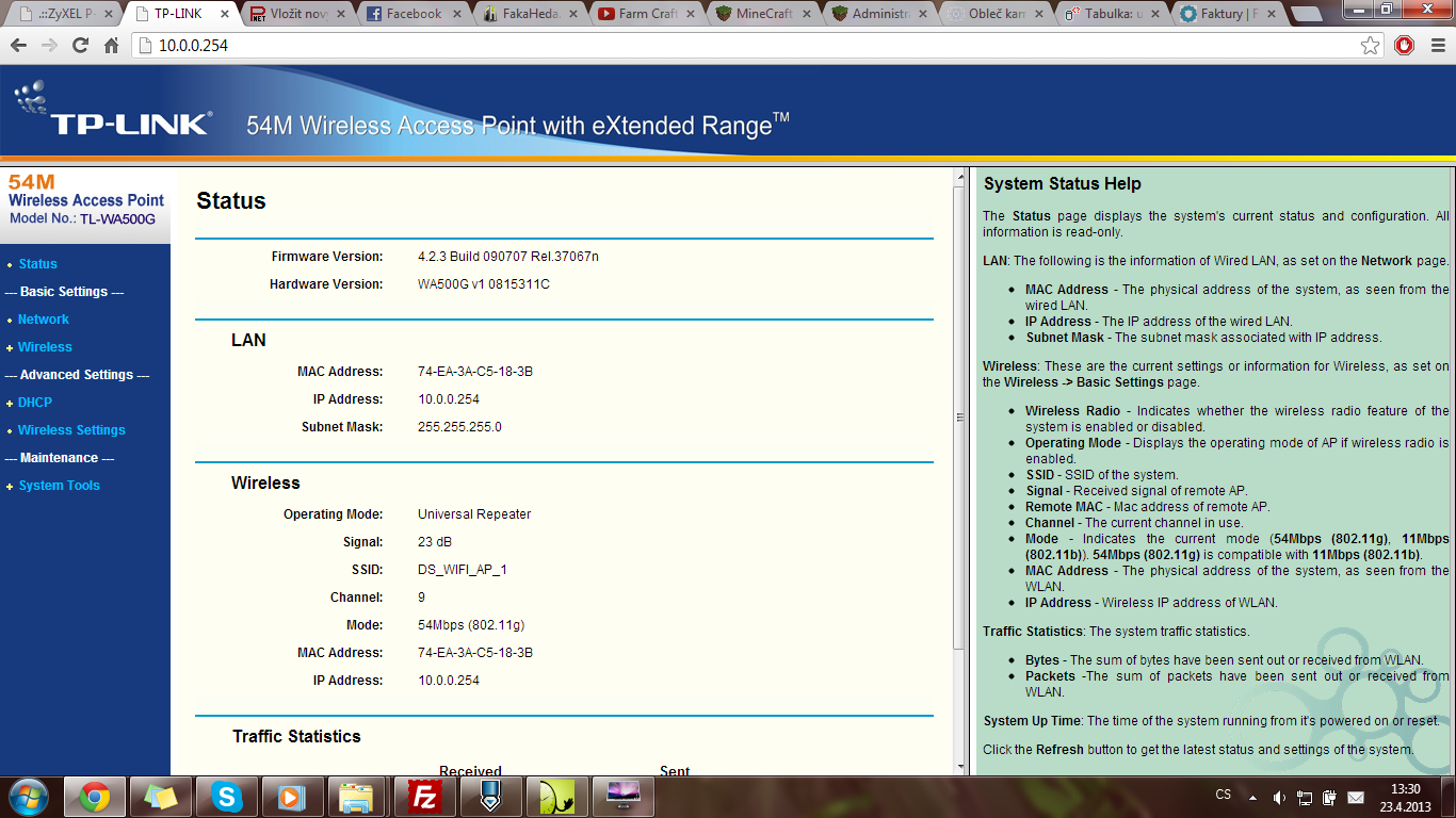 Mám jeden modem od o2 (router+wifi), Zyxel P-660HN a koupený TP-LINK WA500G...