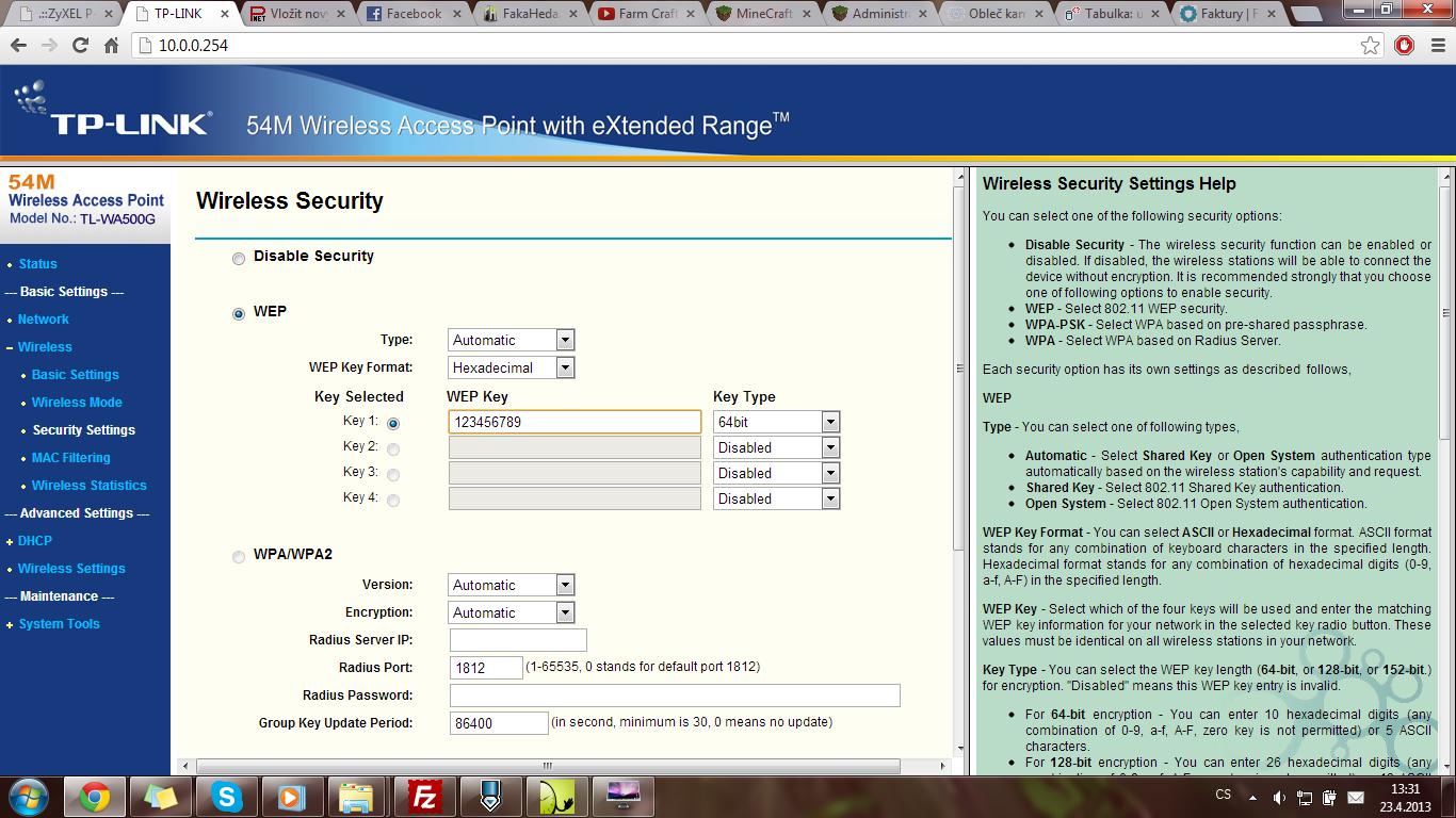 WEP - špatně! Repeater - naprosto nevhodné řešení. Tos nemohl koupit ještě jednu stejnou krabici? Tu…
