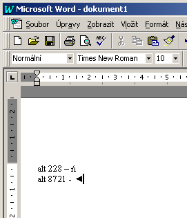 | Já to nechápu. Sice mě to nebolí, ten znak bych tam dostal jinak než Alt+něco, ale…