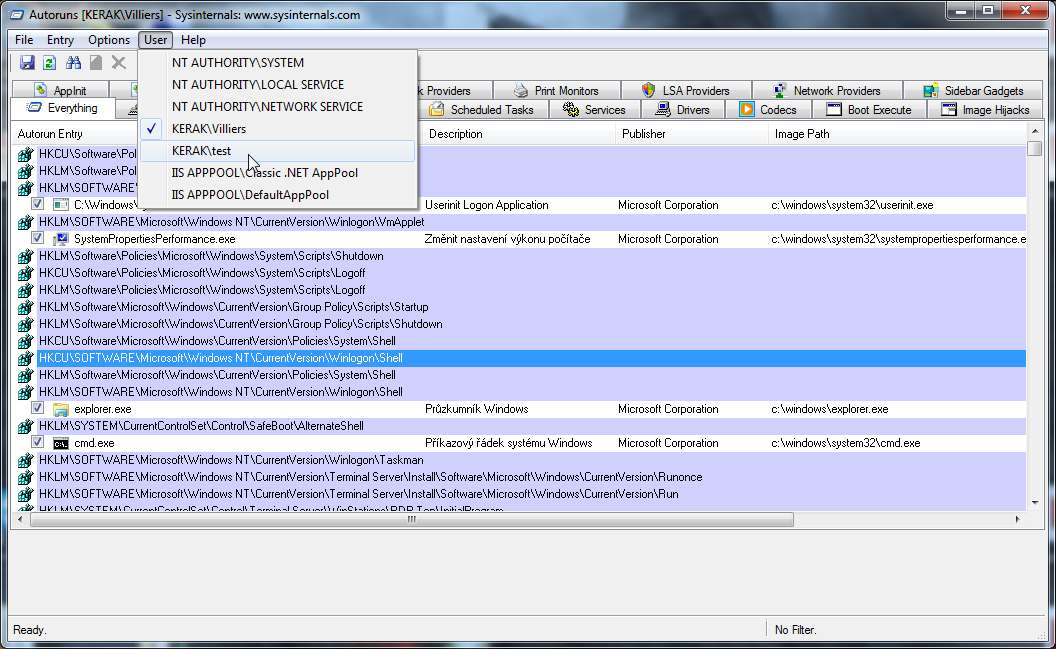 jak píše kmochna - větev "HKEY_CURRENT_USER" platí pro konkrétního přihlášeného uživatele, jenže ten…