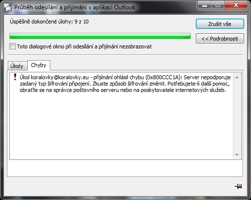 snažím se podle https://www.zoho.com/mail/help/outlook-pop-access. html nastavit stahování pošty do MS Outlooku 2010, mám doménu koralovky.eu a k tomu jsem si pomocí služby ZOHO Mail založil mejl koralovky@koralovky.eu a nedaří se mi to podle přiloženého souboru nastavit. Outlook vyhodí přiloženou chybovou hlášku.