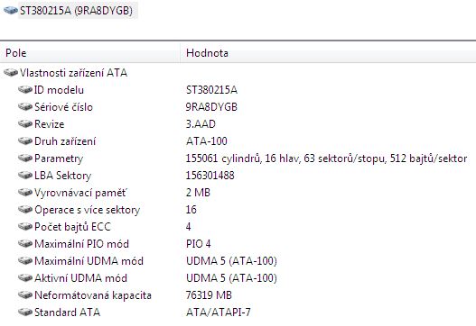 Programy ukazují velikost HDD na 38GB ale je to 80GB
