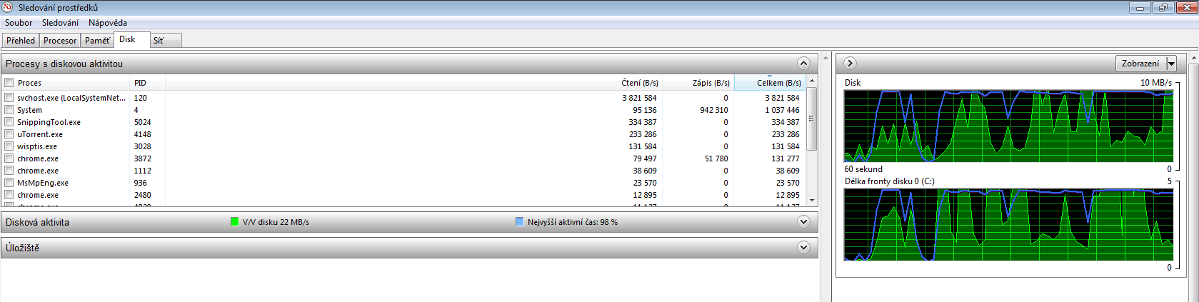 Při běžném používání, mi jede hdd celkem dost, obcas se kousne win atd nevim jestli bych to vyresil nejakym lepsim s vyssima otackama, v priloze jsem prilozil screen