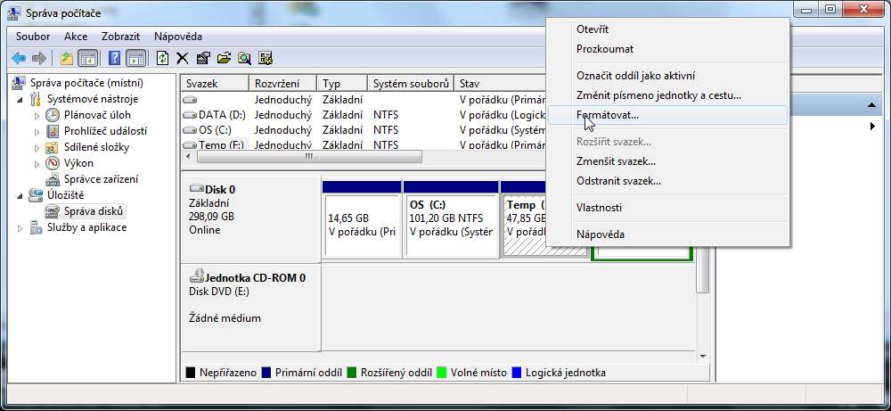 Asi to víš, ale jen pro rychlejší přístup, stačí do vyhledávání v Win7 (nebo "Spustit") zadat diskmg…